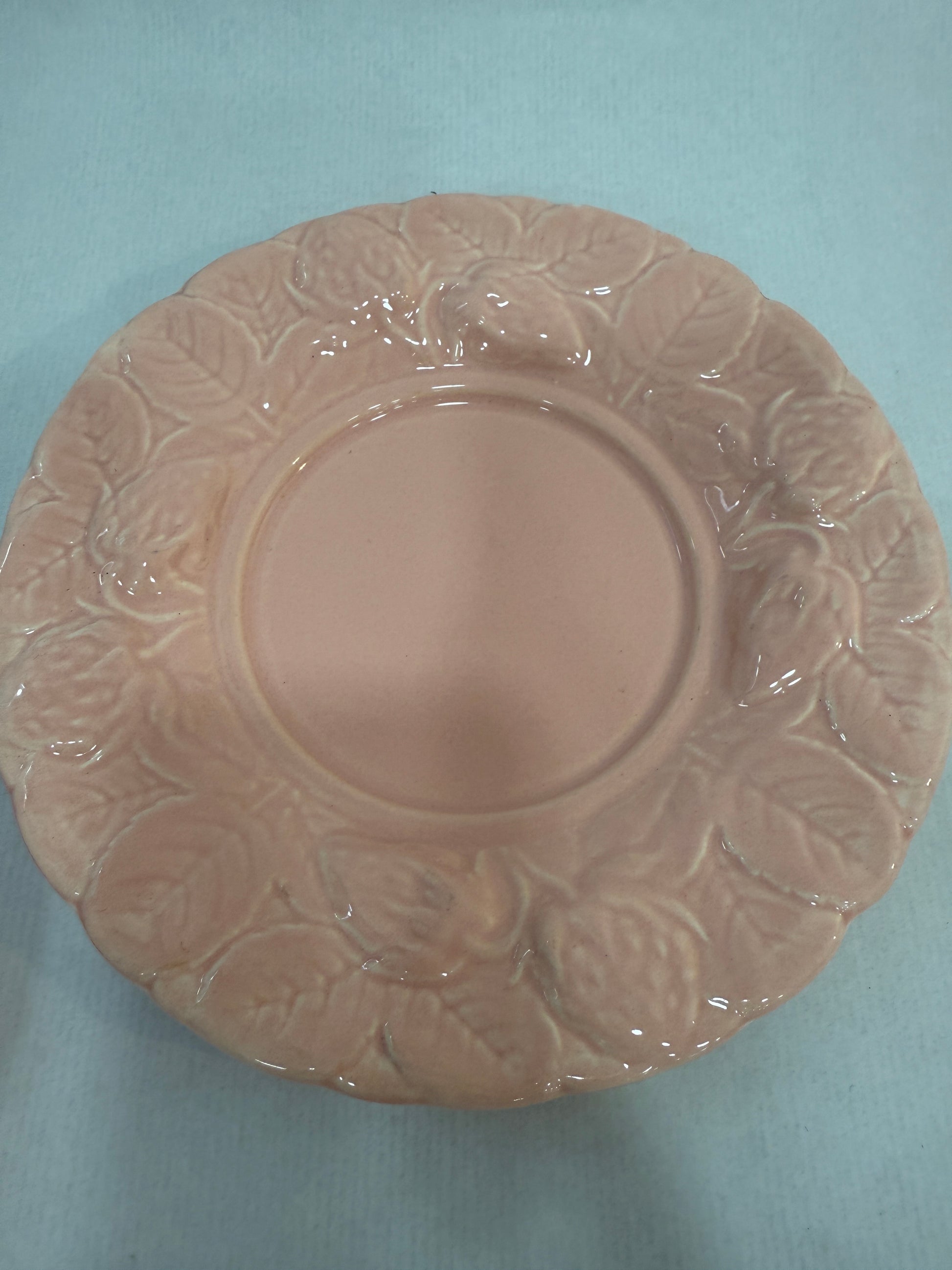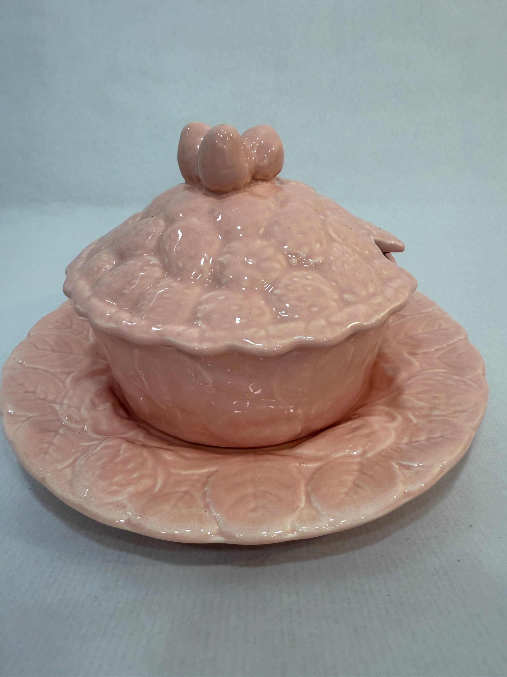 Azucarero vintage de cerámica rosa con plato Geneviève Lethu (3 piezas)