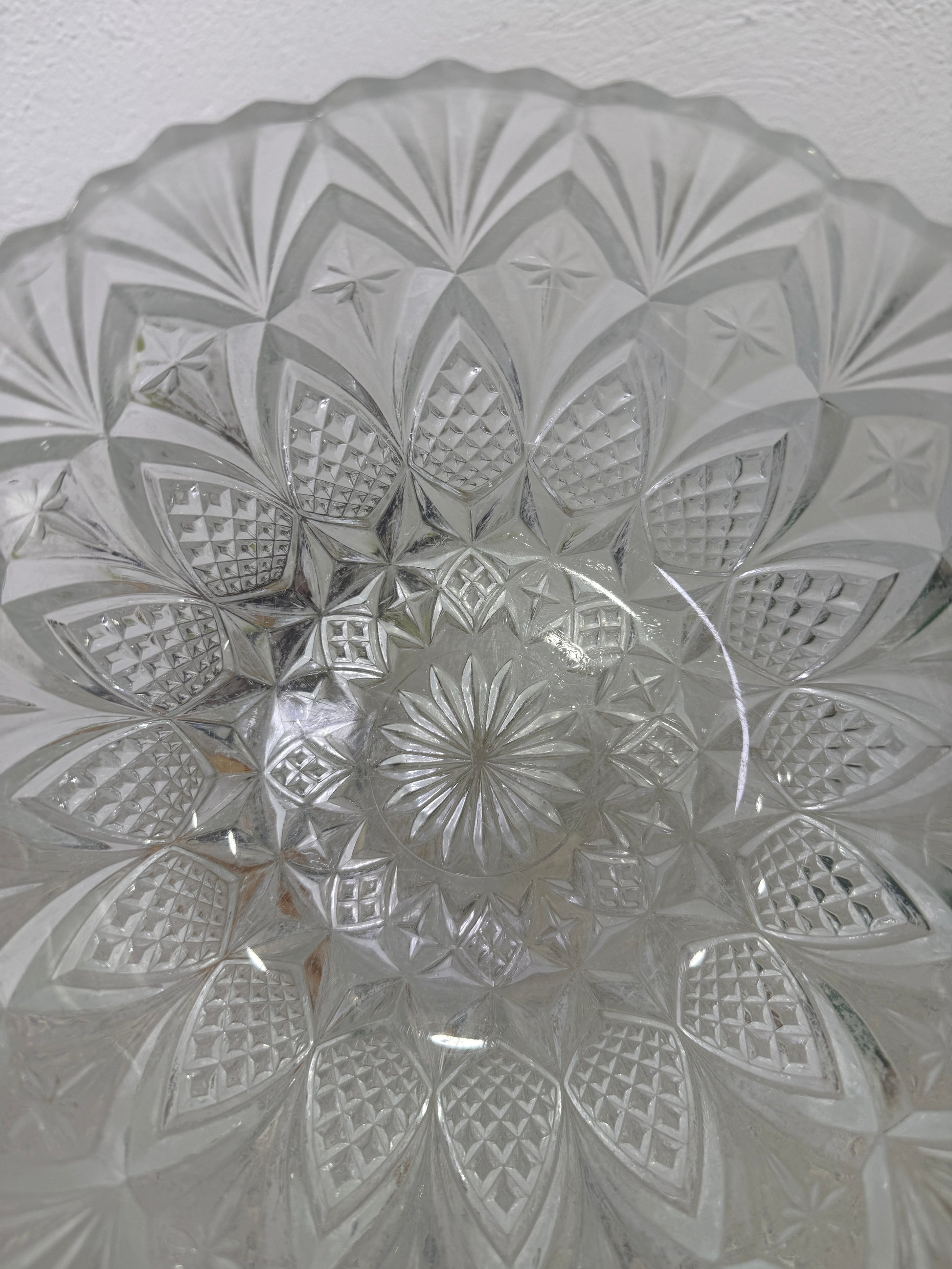 Precioso conjunto vintage procedente de Francia, realizado en cristal prensado con diseño geométrico en forma de estrella y pétalos.