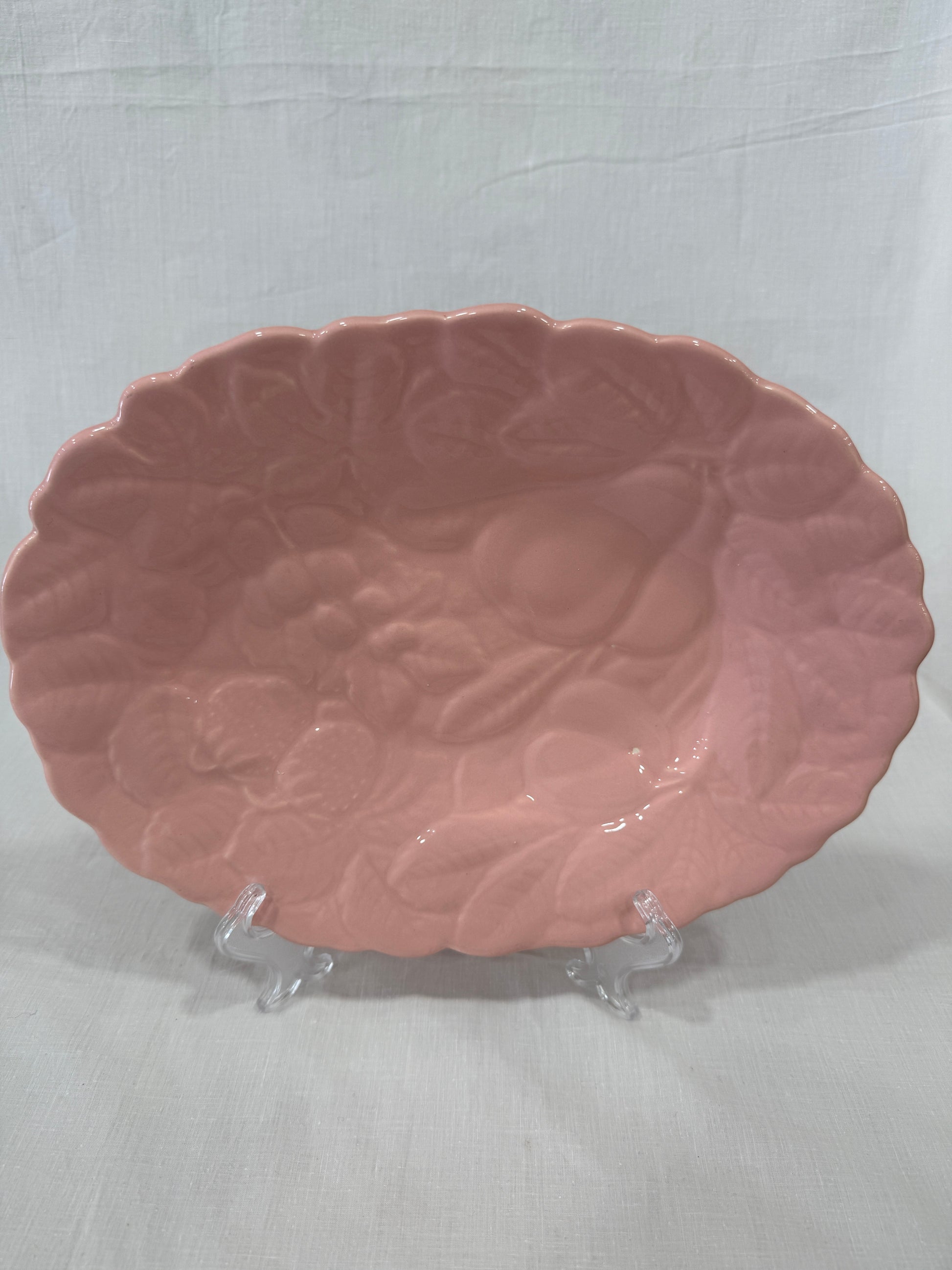 Fuente ovalada en un delicado tono rosa, con relieves de fresas que aportan textura y un toque romántico inconfundible. Una pieza original de Geneviève Lethu, ideal para servir frutas, postres, tartas o platos especiales con estilo y encanto francés. Su diseño elegante combina a la perfección con los platos de postre del mismo modelo, creando un conjunto armonioso para mesas cuidadas al detalle. En perfecto estado de conservación. Por favor, revise bien las fotografías, ya que son parte importante de la descripción.