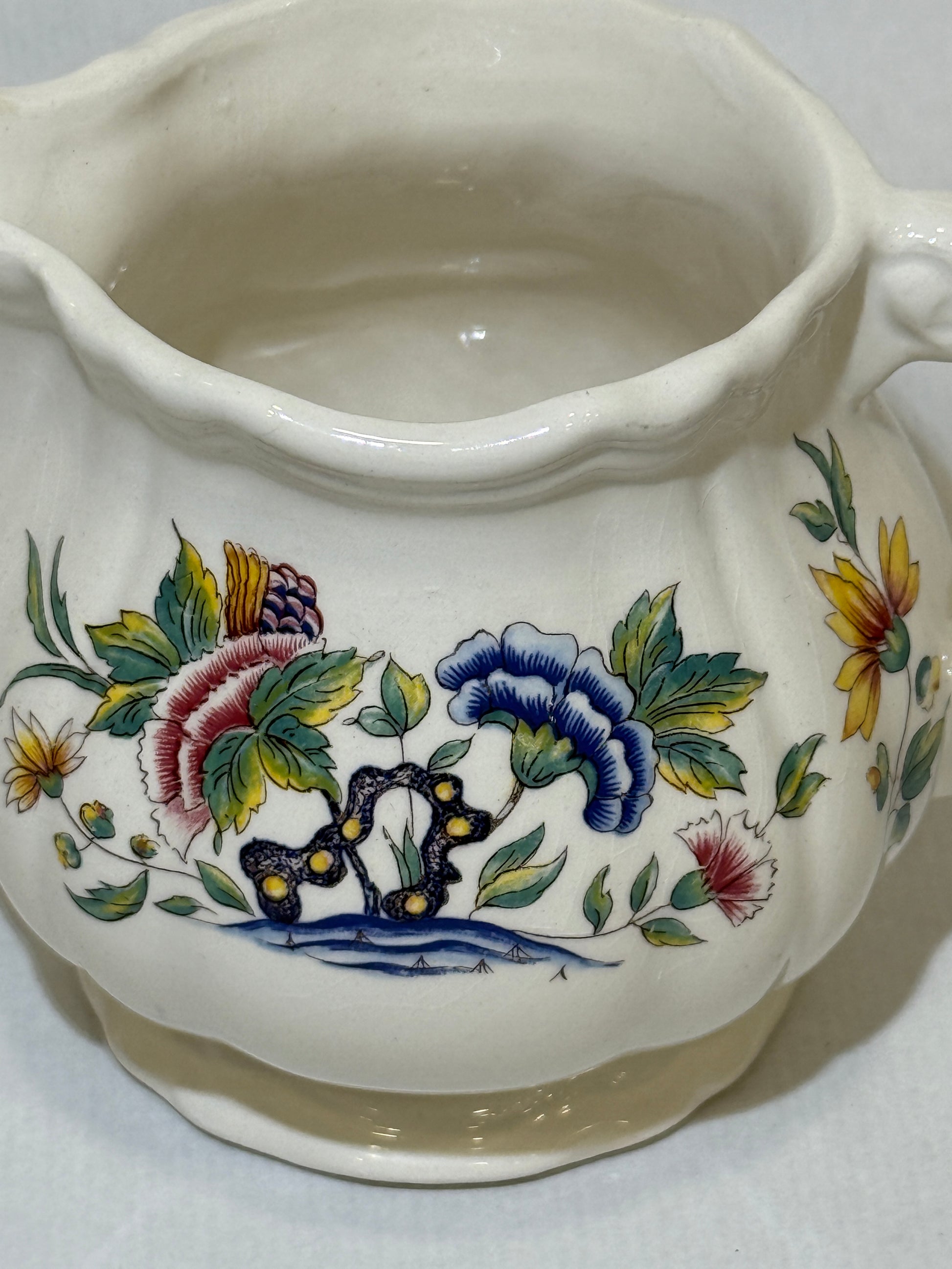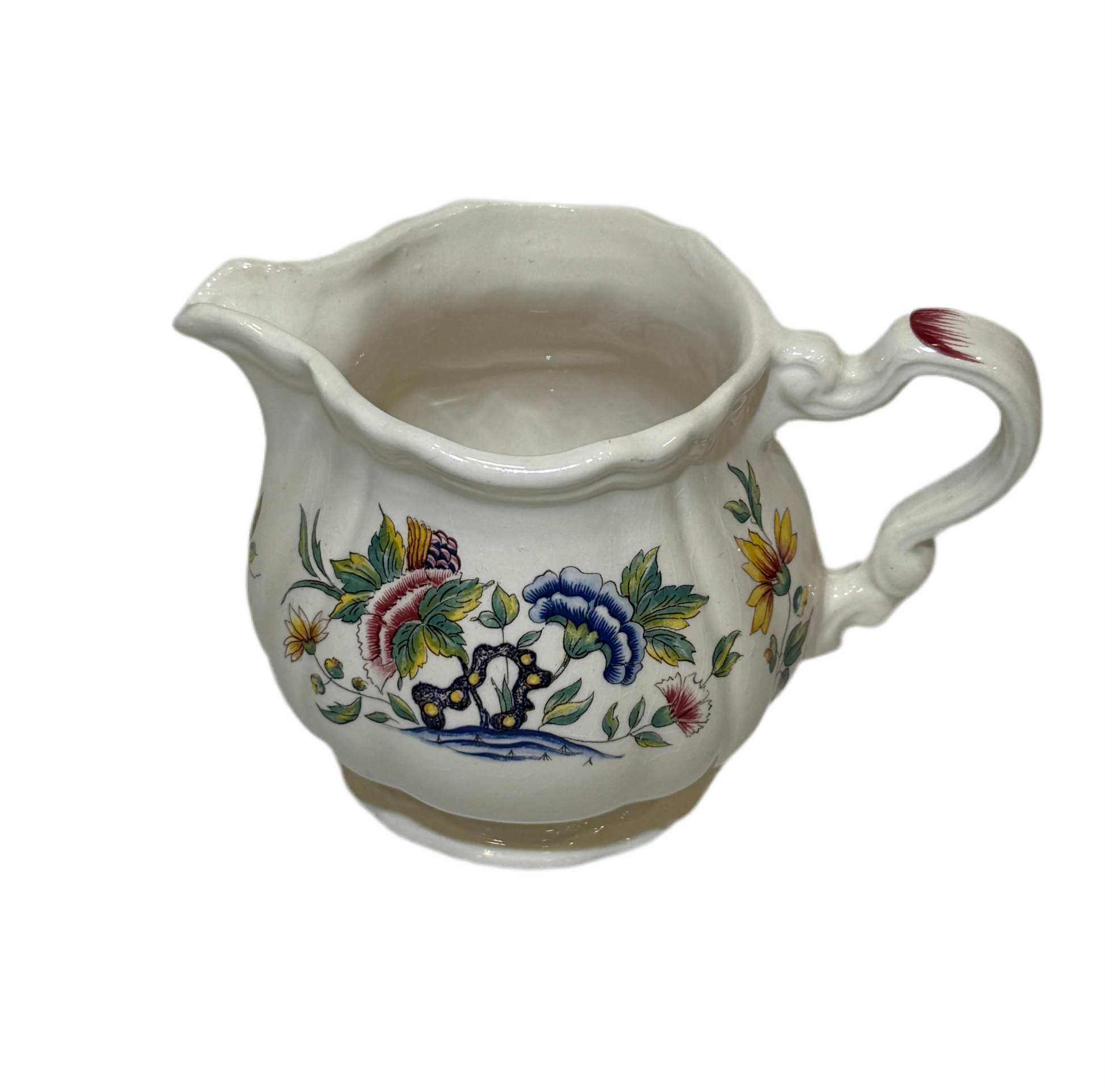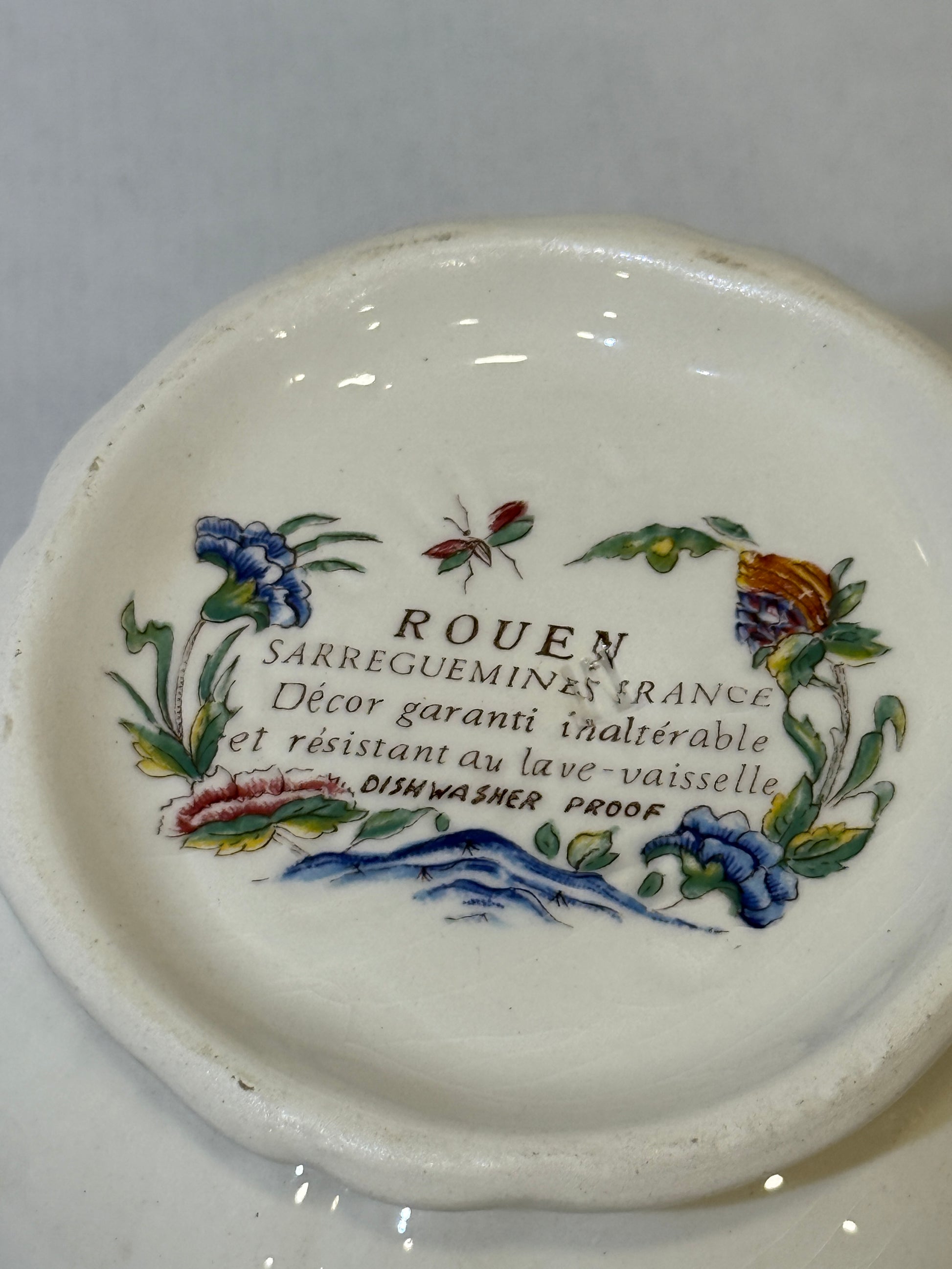 Esta elegante jarra de loza pertenece al modelo Rouen de Sarreguemines, una de las manufacturas más reconocidas de Francia. Decorada con un colorido motivo floral en tonos verdes, rojos, amarillos y azules, y con un diseño de líneas onduladas y asa moldurada, es una pieza que combina belleza y carácter artesanal. En buen estado de conservación. Por favor, revise bien las fotografías, ya que son parte importante de la descripción.