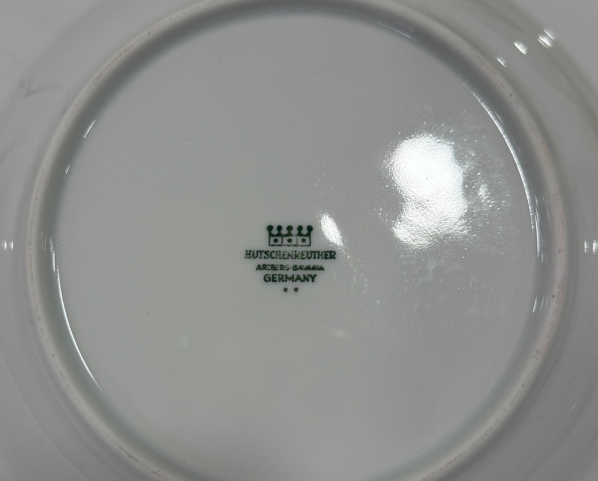 Elegante plato sopero de porcelana alemana, perteneciente a una serie producida por prestigiosas manufacturas de Baviera como Hutschenreuther / Arzberg, reconocidas por la calidad y durabilidad de su porcelana. El plato está decorado con un delicado motivo floral en tonos verdes, de inspiración Árbol de la Vida, y rematado con un fino borde dorado. Una pieza clásica y atemporal, ideal para mesas con encanto y para combinar con vajillas europeas tradicionales.