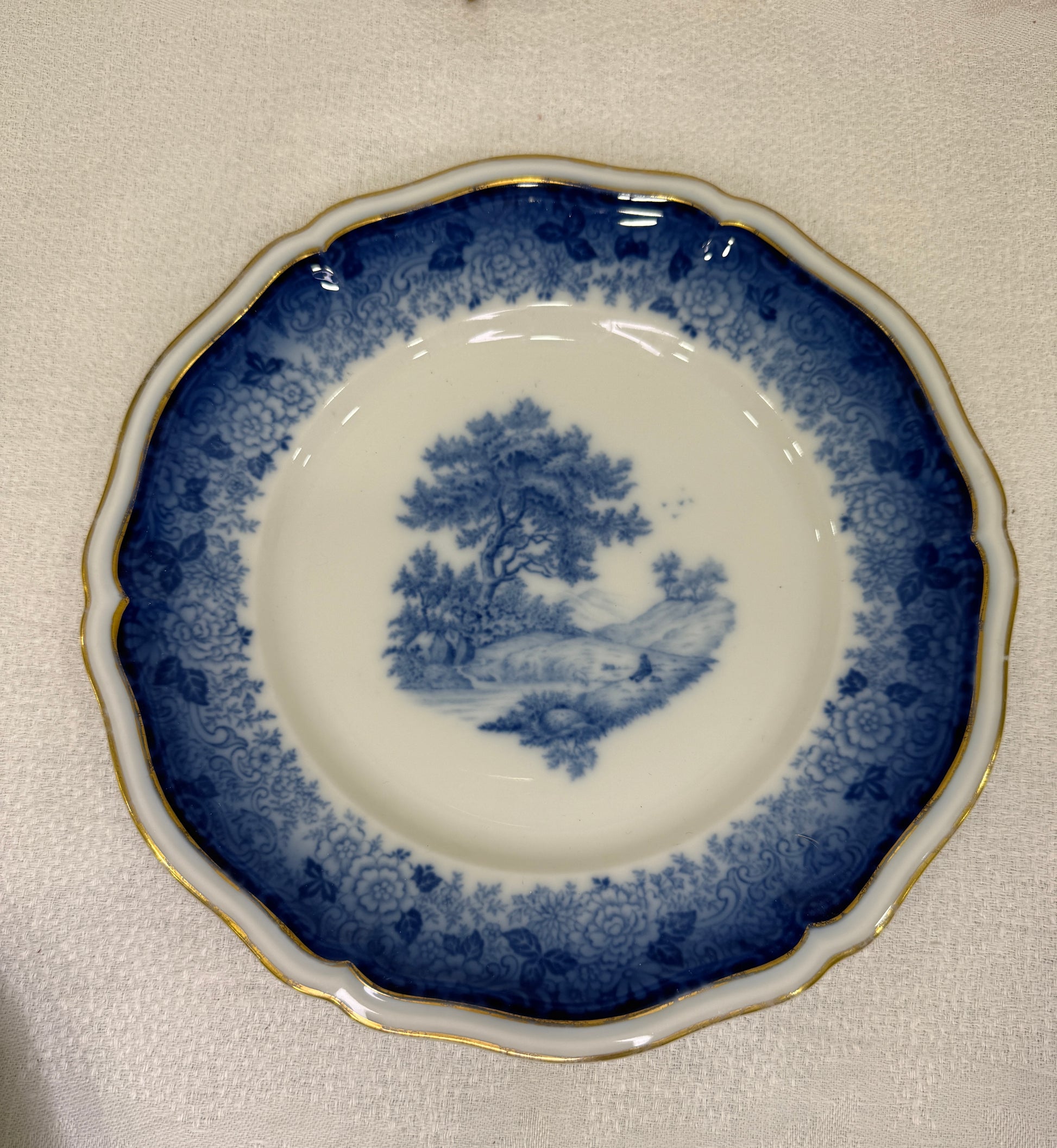 Plato de postre antiguo de la prestigiosa firma alemana Rosenthal, modelo Chippendale, uno de los diseños clásicos más reconocidos de la marca. Decorado en azul cobalto con escena central campestre, orla floral y delicado borde dorado. Una pieza elegante, equilibrada y atemporal, perfecta para mesas especiales o como complemento decorativo. La porcelana es fina, luminosa y de gran calidad, característica de Rosenthal.