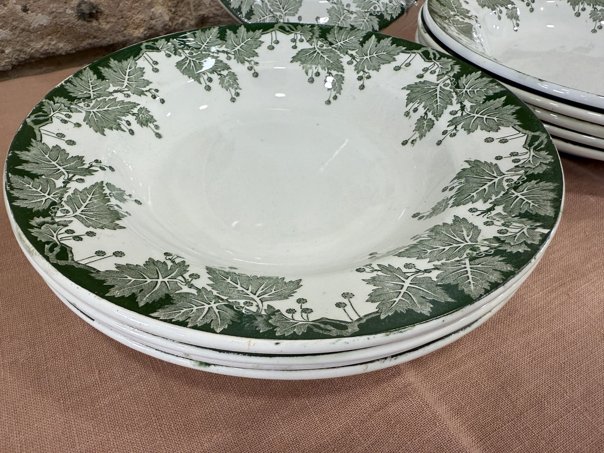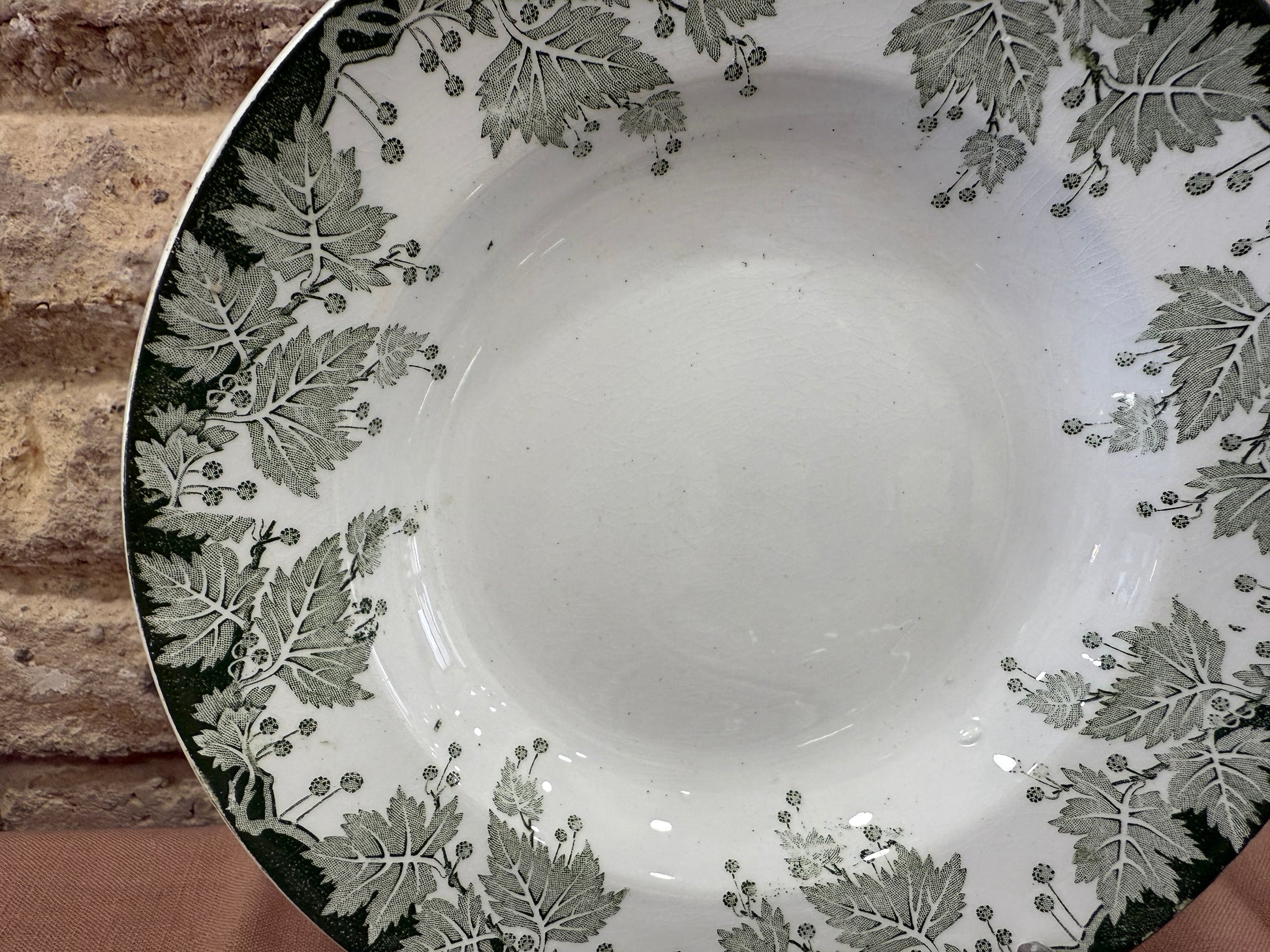 Plato hondo antiguo de la reconocida manufactura francesa Saint Amand & Hamage Nord, perteneciente al modelo Platane y elaborado en loza Terre de Fer. Una pieza auténtica, producida entre finales del siglo XIX y mediados del siglo XX aprox. 1896–1919, ideal para quienes buscan vajilla antigua con encanto y carácter histórico. Su delicado diseño floral en tonos suaves aporta una elegancia atemporal, perfecta para vestir la mesa en ocasiones especiales o para uso decorativo en cocinas y comedores con estilo. Muy buen estado de conservación para su antigüedad, sin grietas ni desconchones, y mantienen un esmaltado brillante que realza su belleza. Por favor, revise bien las fotografías, ya que son parte importante de la descripción.