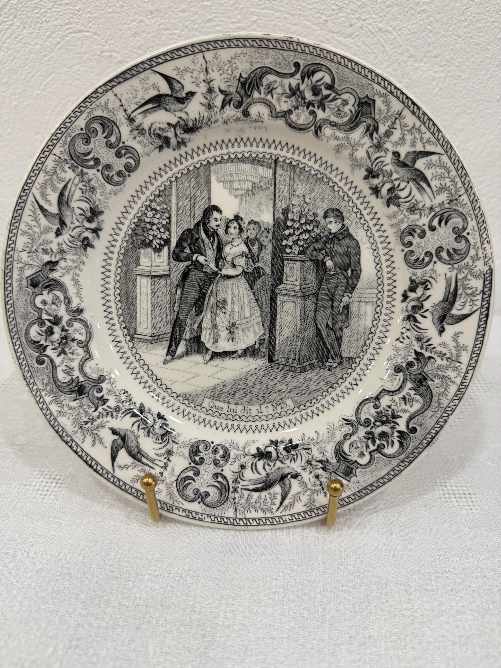 Antiguos platos franceses de la serie narrativa “Scènes de la vie quotidienne”, perteneciente a las célebres assiettes parlantes producidas por Hautin & Boulenger en Choisy-le-Roi entre 1863 y 1878. Cada pieza ilustra una escena costumbrista o moralizante, acompañada de un título en francés y número de serie, con decoración en transfer en negro sobre loza blanca y un borde ornamentado con aves y motivos florales. En muy buen estado de conservación. Por favor, revise bien las fotografías, ya que son parte importante de la descripción.