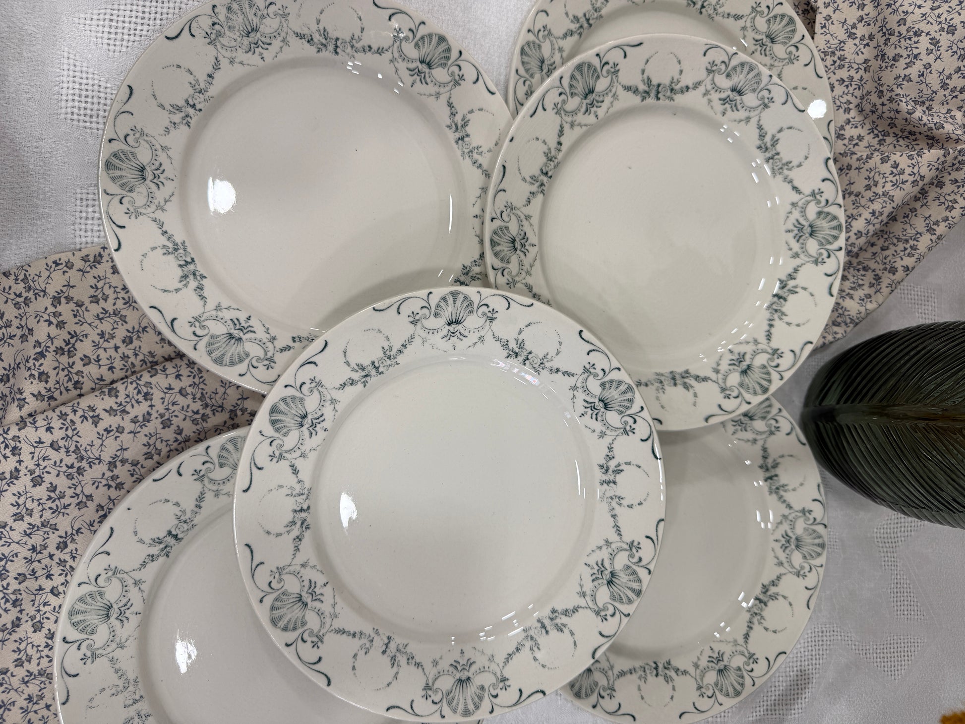 Set de 6 platos llanos antiguos – K&G Luneville, modelo Guirlande (Francia, ca. 1900)