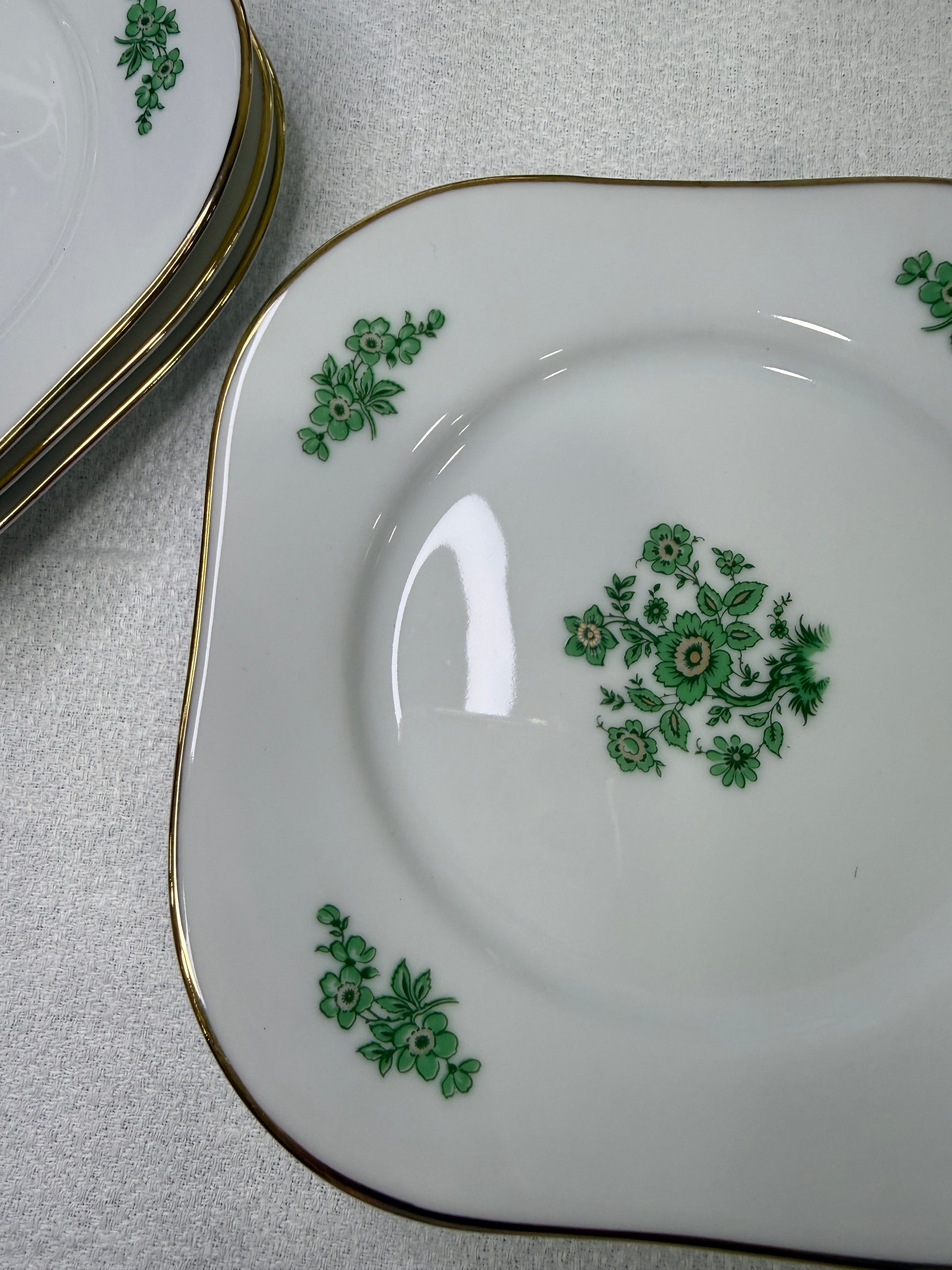 • Porcelana fina alemana · Decoración verde y dorada · Patrón Árbol de la Vida