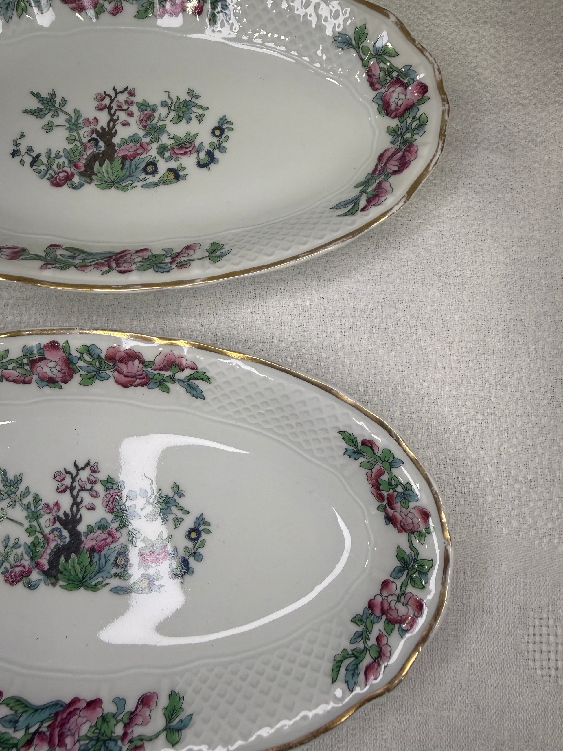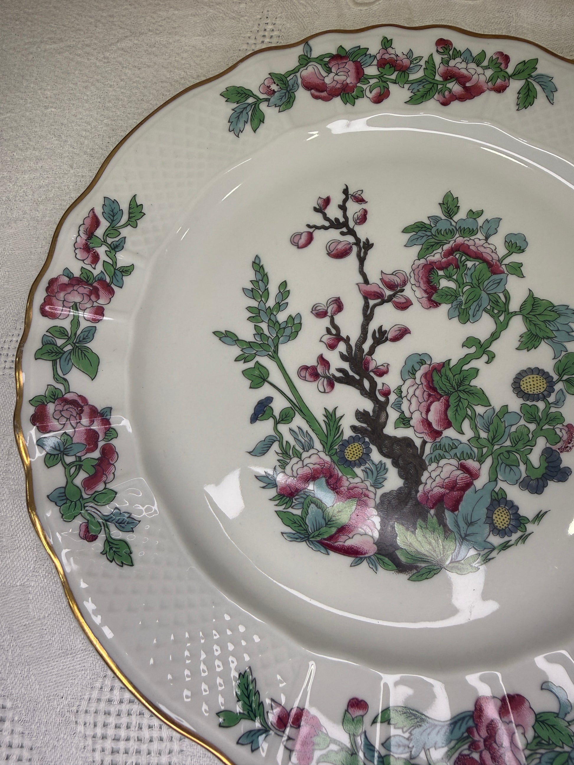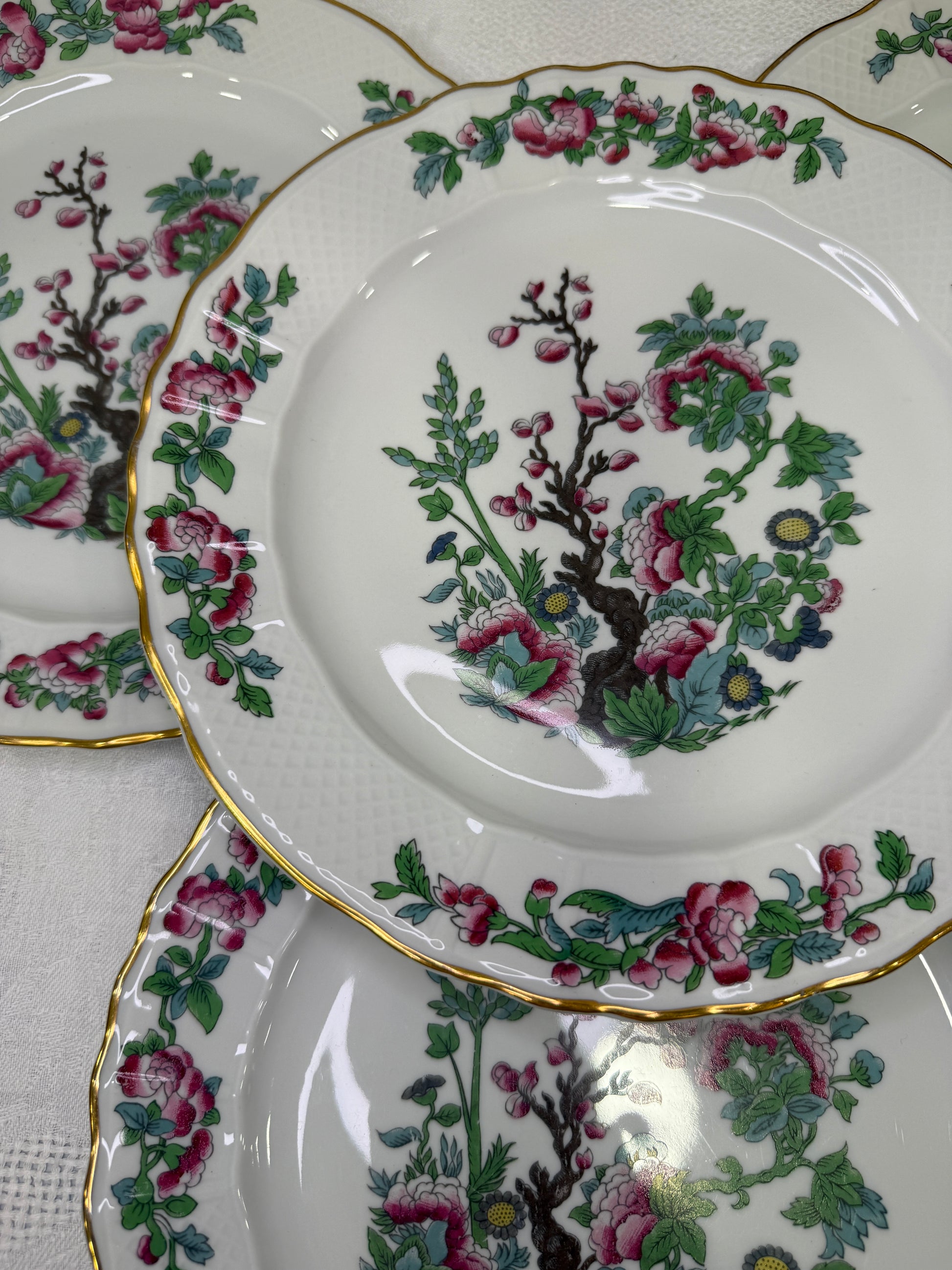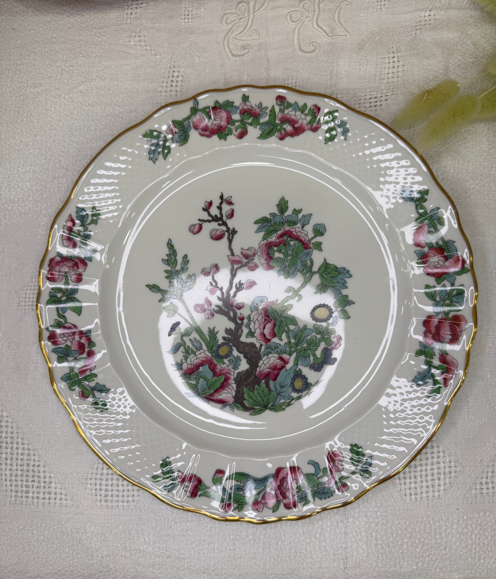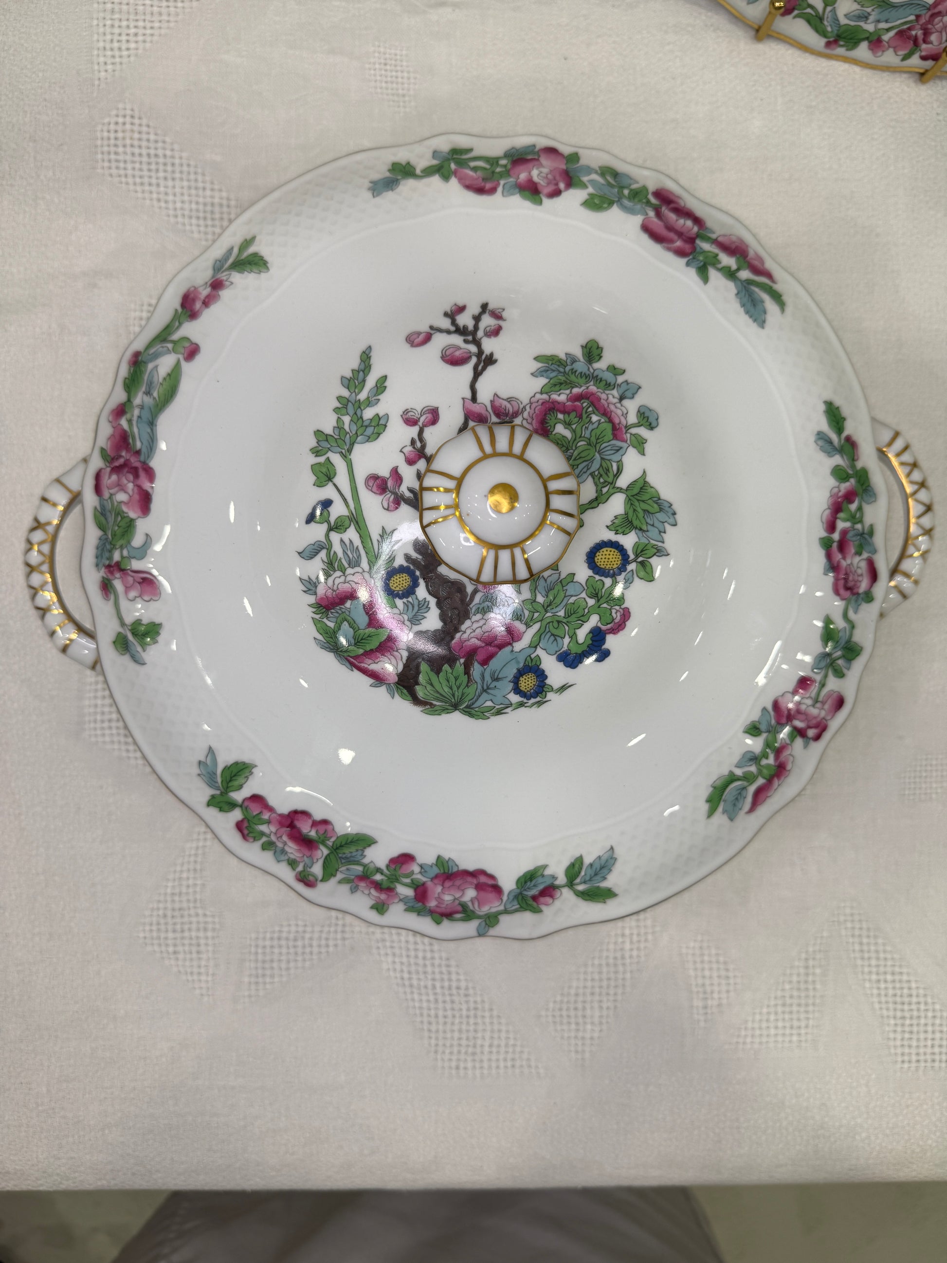Elegante vajilla francesa de porcelana Bernardaud, modelo Arbre des Indes, una de las decoraciones clásicas más apreciadas de la firma. Inspirada en la estética oriental y realizada en fina porcelana de Limoges, es un modelo muy buscado por coleccionistas y amantes de la porcelana francesa por su delicadeza, color y refinados detalles dorados.