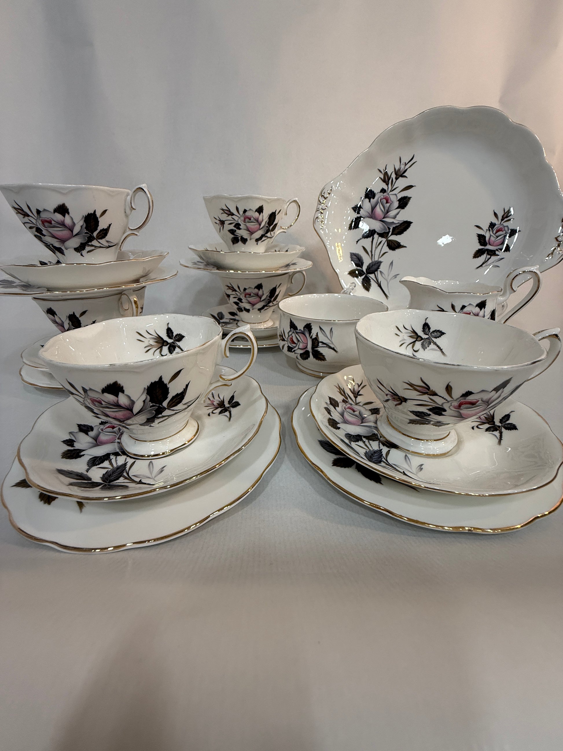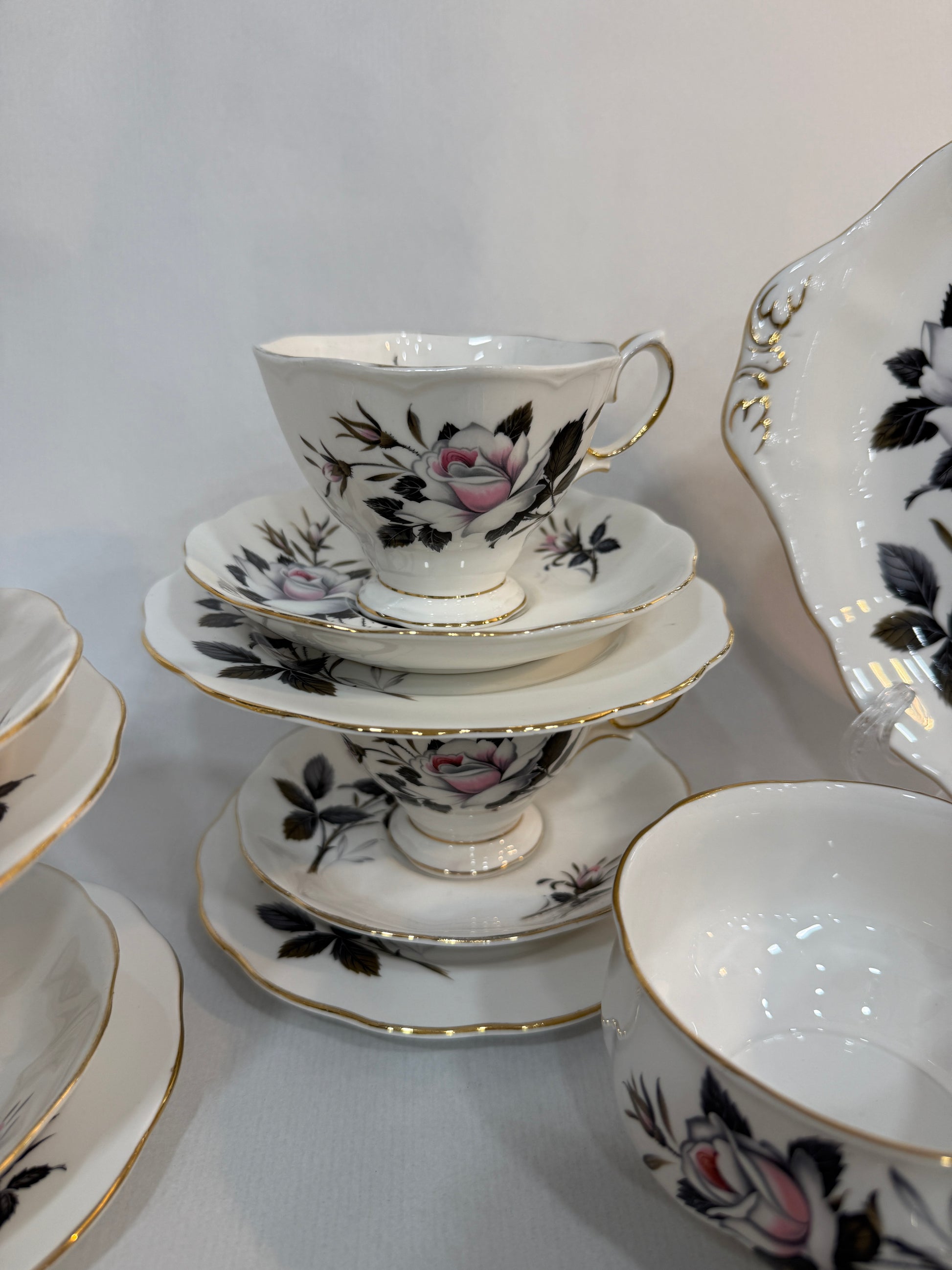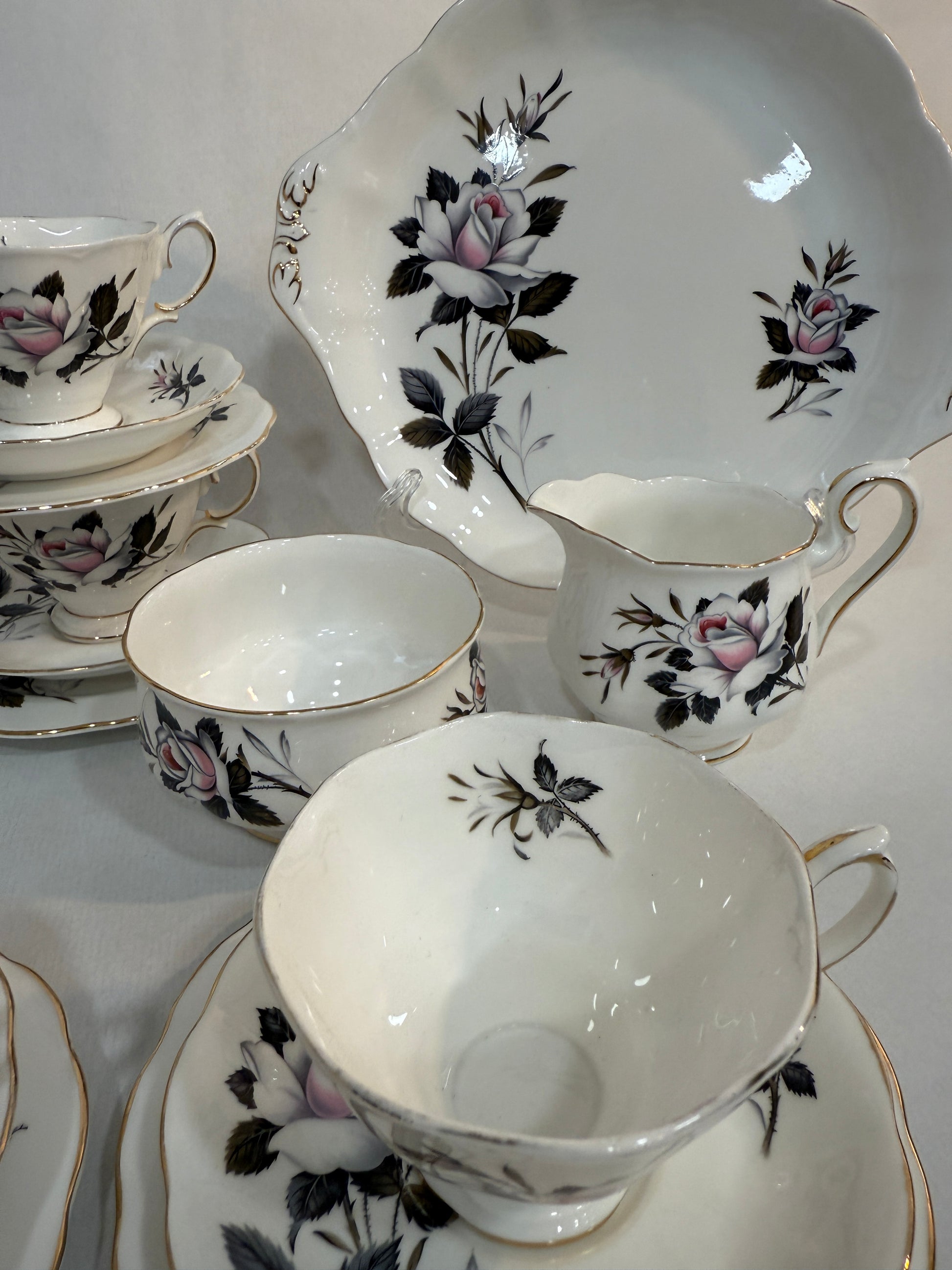 Juego té Royal Albert Queen’s Messenger (1950–1970), porcelana inglesa antigua