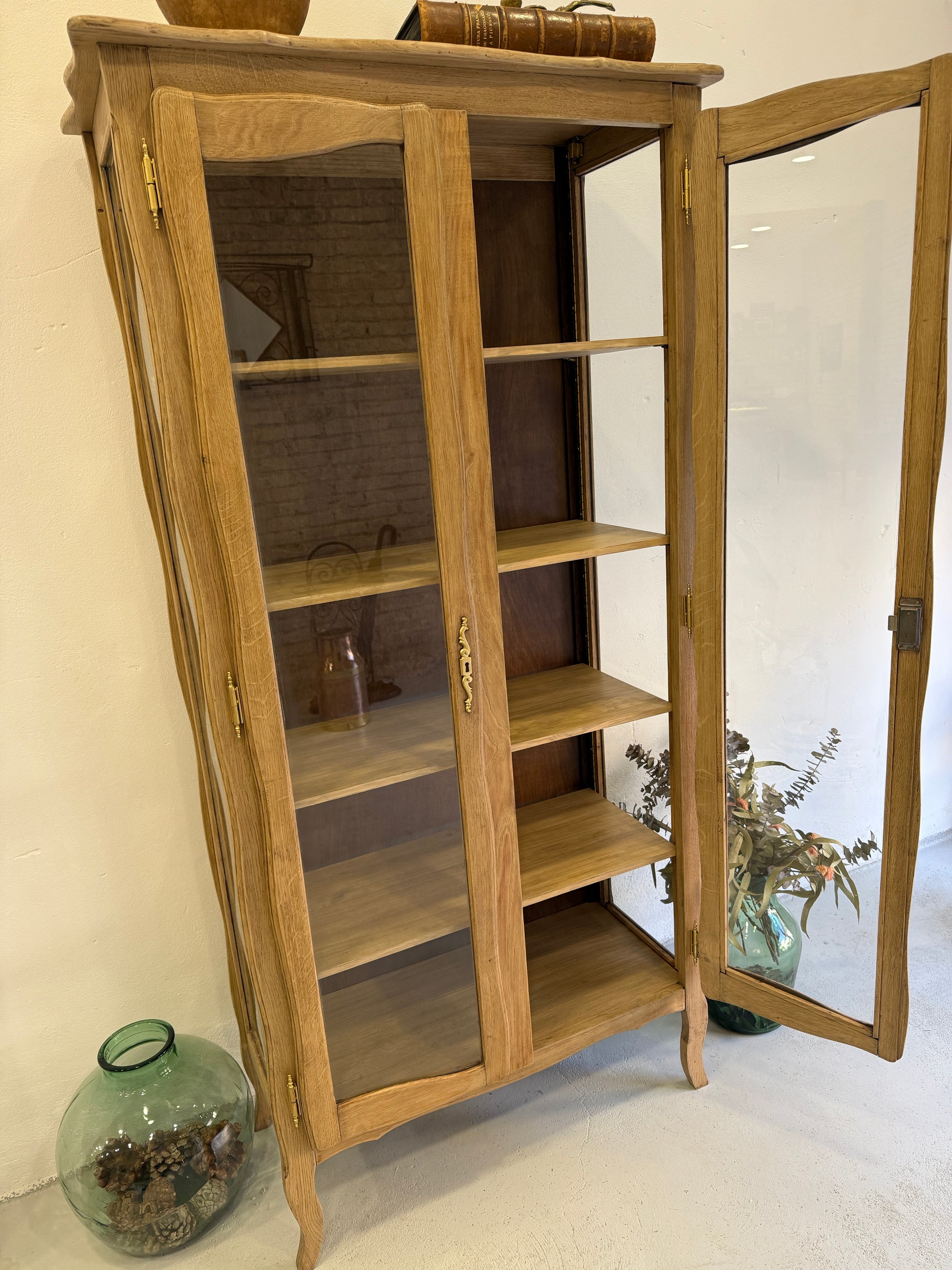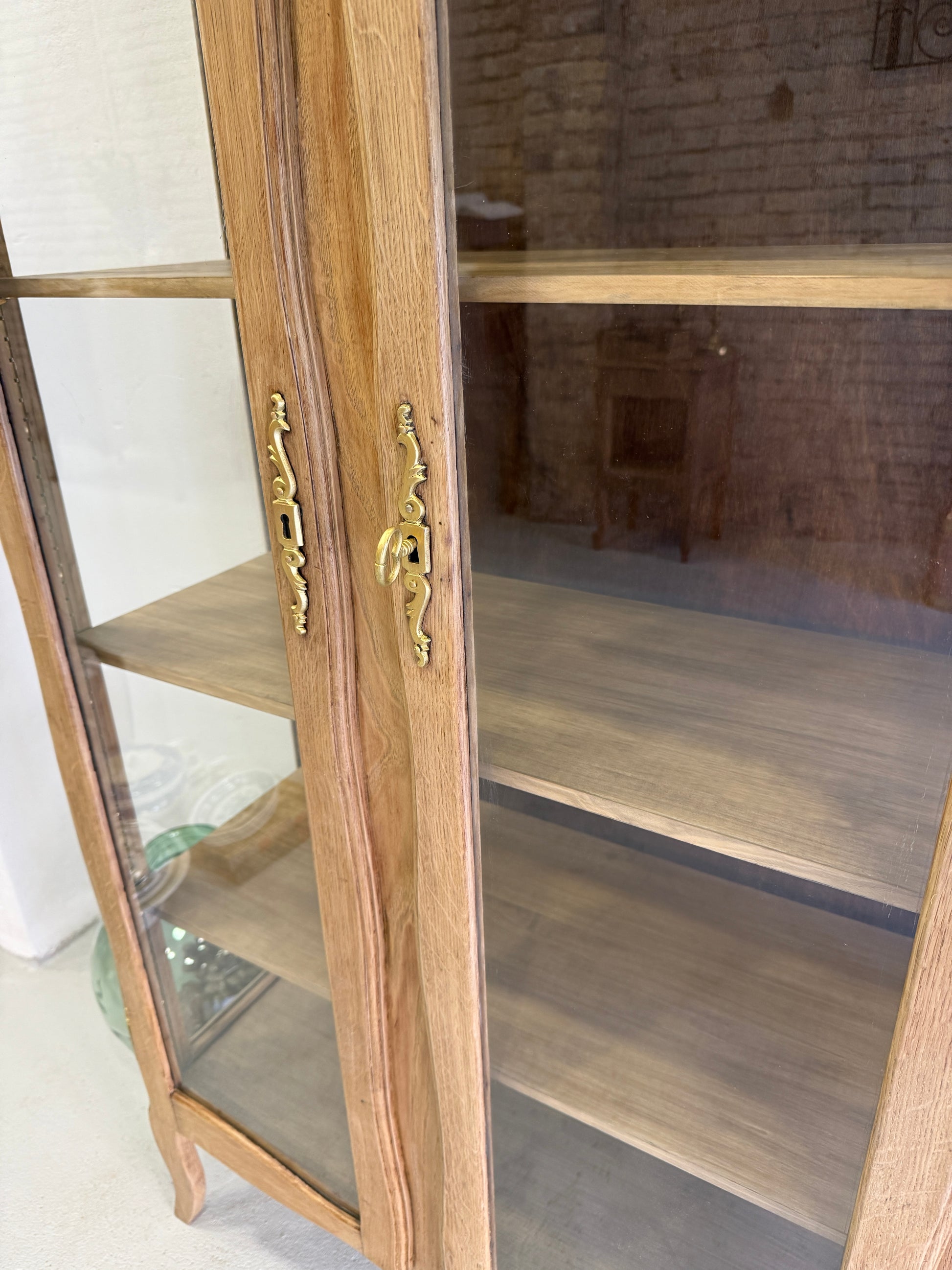 Con líneas puras y elegancia atemporal, esta vitrina francesa ha sido restaurada cuidadosamente para resaltar la belleza natural del roble. El acabado en barniz mate potencia la calidez de la madera y permite apreciar su veta original, aportando serenidad y carácter a cualquier espacio.